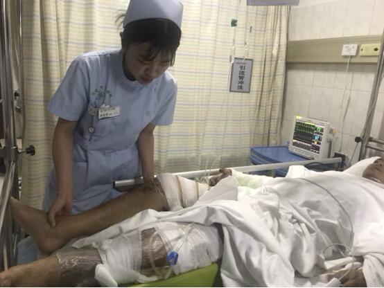 由于患者病情重,隔天需行一次血透治療,且傷口引流管多,需要持續(xù)不間斷引流,為防止血透轉(zhuǎn)運(yùn)途中管道脫落,保證引流效果,每次血透時(shí),責(zé)任護(hù)士全程接送,不敢有半點(diǎn)松懈?;颊唧w重200多斤,手足踝外科的護(hù)士們每兩個(gè)小時(shí)為其翻身拍背,并功能鍛煉、持續(xù)傷口引流管沖洗、安慰鼓勵(lì)患者??紤]到患者家住外地,為保證患者的營養(yǎng),護(hù)士長還主動(dòng)聯(lián)系食堂,為家屬提供煲湯做飯條件。經(jīng)過醫(yī)患雙方一個(gè)多月的共同努力,患者腎功能慢慢恢復(fù),患肢逐漸恢復(fù)正常,不僅保住了性命,也保住了肢體,患者于9月23號康復(fù)出院。