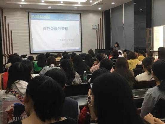 守護針尖上的安全,你我同行 發(fā)布時間:2018年10月16日 11:40:25 預覽:2541次 通訊員肖志喜報道:靜脈輸液是臨床治療中常用的治療手段,為了提高我院靜脈治療水平,靜療小組積極提高業(yè)務能力和輸液安全管理能力,并帶動全院輸液治療更加規(guī)范化、科學化,從而為患者提供安全、有效的靜脈治療。 10月10日下午三點,我院靜療??菩〗M第四季度的培訓在華新分院15樓會議室舉行。護理部副主任楊柳、護理總帶教羅明慧老師、各科護士長、各科室靜療??菩〗M聯(lián)絡員參加了此次培訓活動,培訓由靜療小組組長李小敏護士長主持。 此次培訓分為理論講解和操作示范兩部分。課上,唐美容護士長就藥物外滲的原因、表現(xiàn)、處理及預防進行了深入淺出的講解,課堂氣氛活躍,現(xiàn)場積極互動。隨后,泌尿外科護士李瑯用情景模擬的方法現(xiàn)場演示了留置針的規(guī)范操作,并對大家的提問給予詳細解答和示范。 最后,羅明慧老師總結了在靜脈治療操作中護士應掌握的要點及各個細節(jié),進一步提高輸液治療水平,保障患者安全。 通過此次培訓,大家對藥物外滲的管理有了更深刻的認識,對靜脈治療操作技術的規(guī)范有了新的正確理解,也體會到了操作中細節(jié)的重要性。學以致用,在提高自己業(yè)務能力的同時,為患者提供更安全、有效的護理服務。