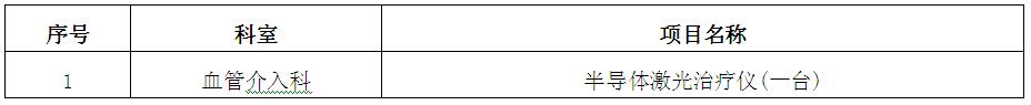 因醫(yī)院發(fā)展的需要,我院擬于近期對(duì)一批醫(yī)療設(shè)備進(jìn)行院內(nèi)招標(biāo)采購(gòu),歡迎具備條件的公司報(bào)名參加。