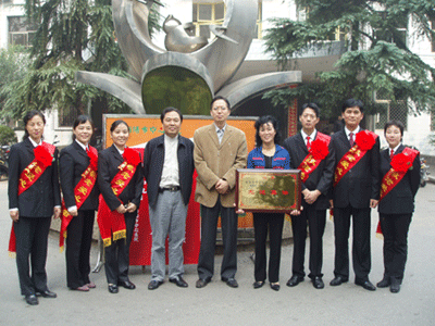 我院被評為市敬老愛心使者先進集體(圖) 發(fā)布時間:2006年11月1日 預(yù)覽:5184次 10月30日,衡陽市敬老愛心使者表彰暨重陽節(jié)慶祝大會在市政府會議中心舉行,我院被評為衡陽市敬老愛心使者先進集體,羅曉波、萬劍、趙素寒、封蘭芳、周湘樺、雷敏被評為衡陽市敬老愛心使者先進個人。圖為院領(lǐng)導(dǎo)與獲得榮譽者合影。(鄒建軍)